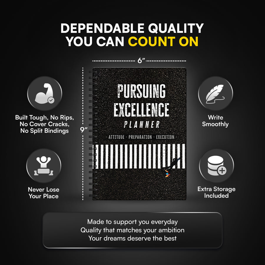 The Pursuing Excellence Planner was designed after years of research and working with leaders, coaches, and peak performers. Every page is based on proven systems for goal setting, habit tracking, and self-reflection. This isn’t guesswork. It’s a tested blueprint for winning - one that’s proven to turn ideas into achievements and chaos into clarity.