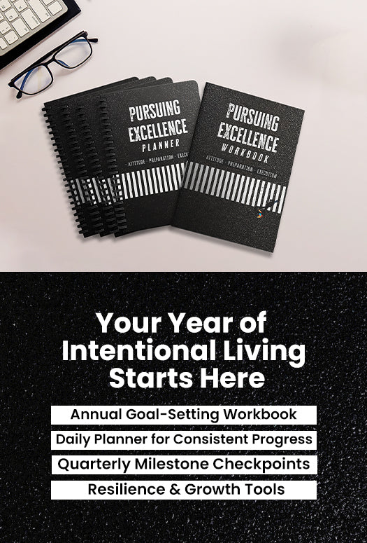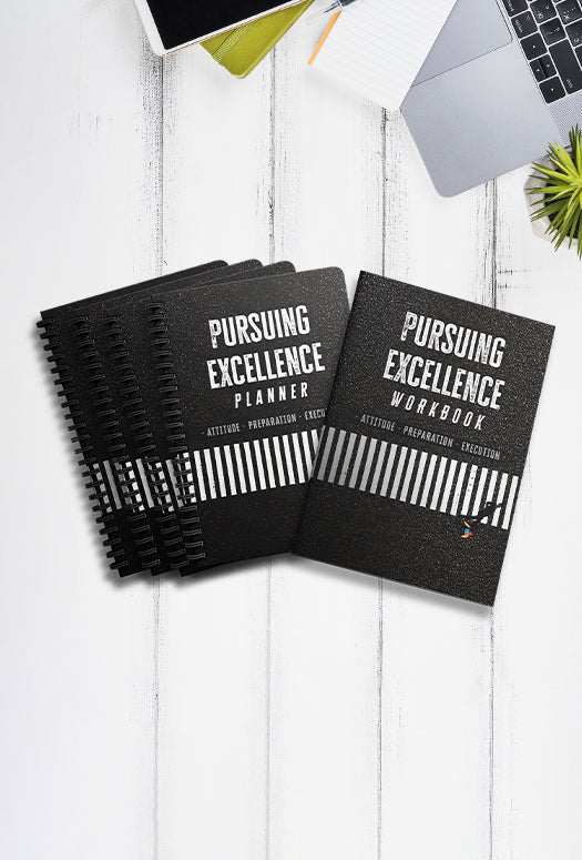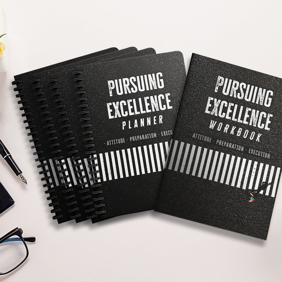(1) Pursuing Excellence Workbook - Designed to help you improve your attitude, prepare your time diligently, and execute on a daily basis. Together, they create a 12-month planner system that keeps you aligned, accountable, and in control of your journey.